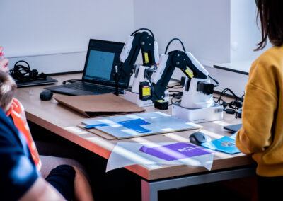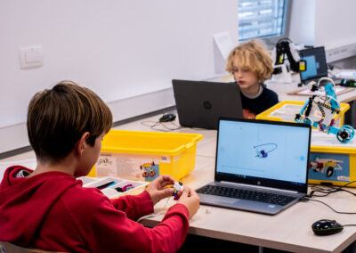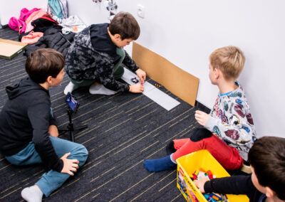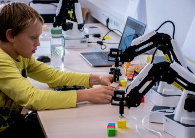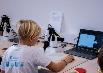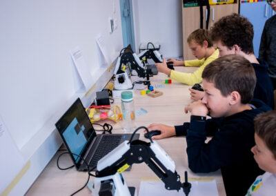 Tokrat smo poleg obstoječih dejavnosti Lego robotike organizirali še delavnice v upravljanju robotske roke Dobot, trenirali naše veščine ročnih spretnosti na delavnici grafičnega oblikovanja in izdelovanja, preizkusili smo se tudi v vlogi režiserja in snemali animacije na delavnici stop-motion videografije.